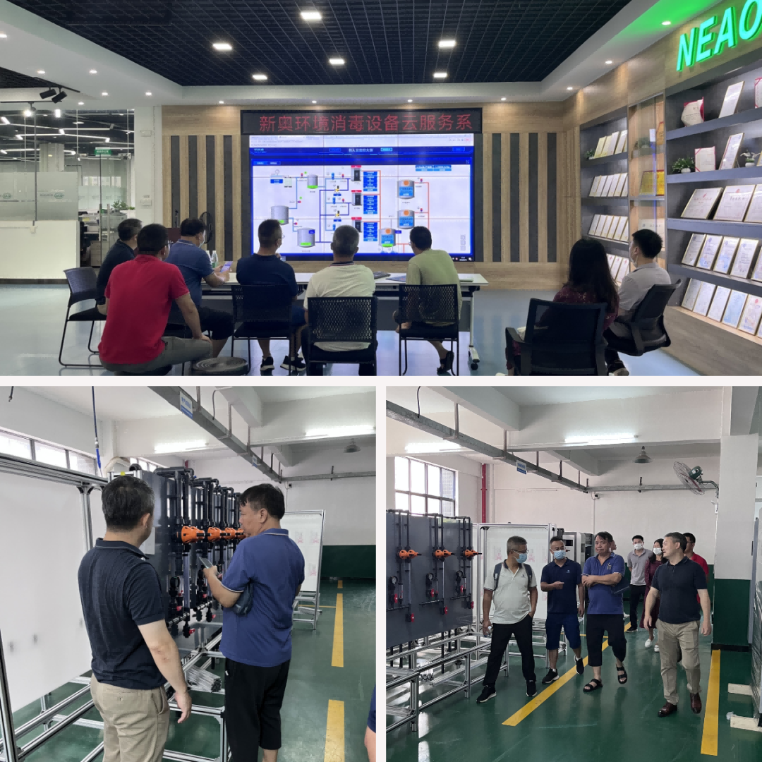 新奥环境总经理刘齐鑫、技术总工石角、销售经理洪培灿等相关同事热情接待了韶关水司领导一行,并邀请来访领导参观了云服务厅、设备展厅、生产车间等处,同时详细介绍次钠发生器、精准加药设备、紫外线消毒设备等主要设备的性能优势。
